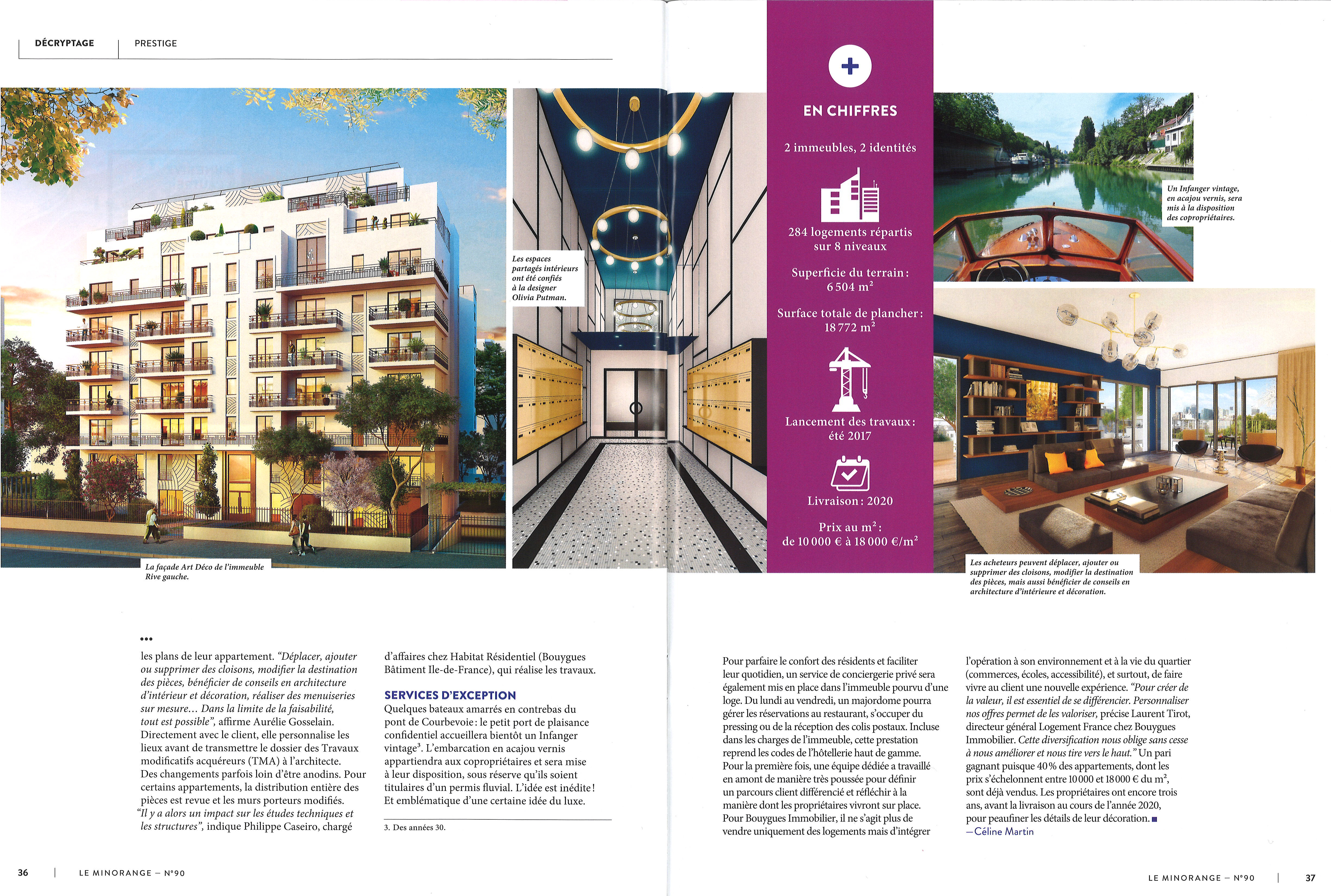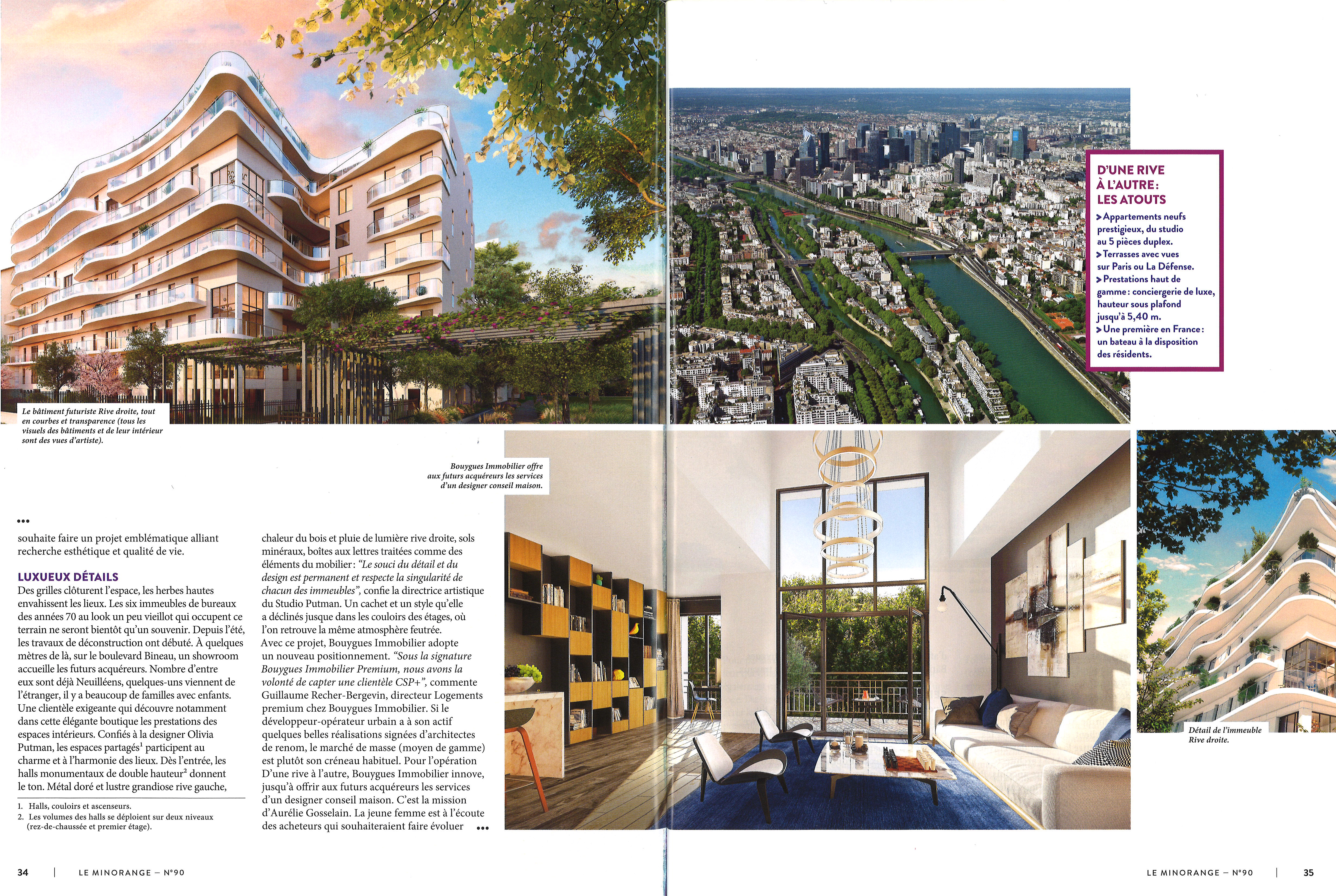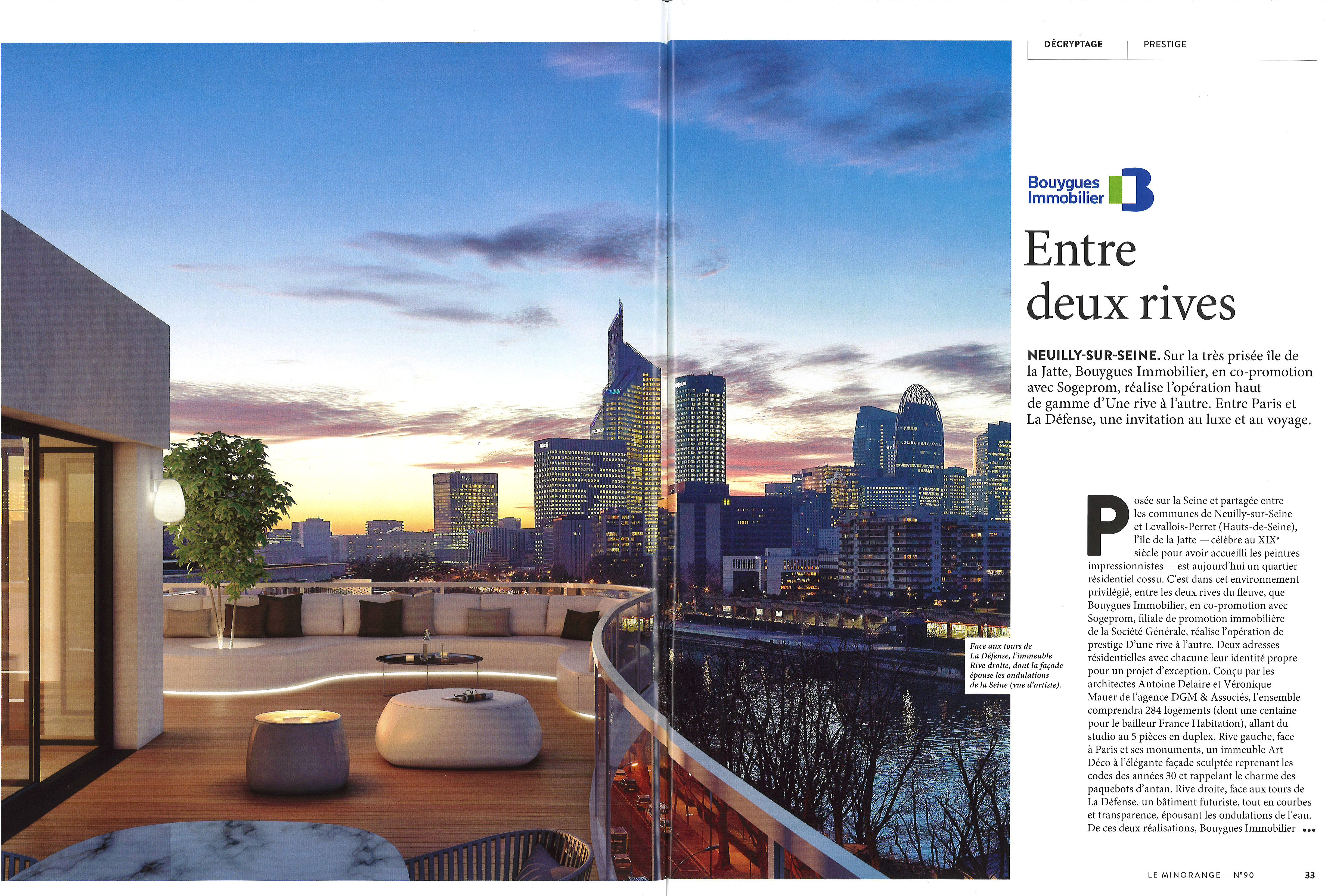 Sur l'Ile de la Jatte, à Neuilly sur Seine, deux rives, deux adresses qui se rejoignent au centre, deux paysages différents sur la Seine, l'une côté Quartier d'Affaires de La Défense, la seconde côté Neuilly et ses immeubles classiques, deux atmosphères particulières, deux architectures propres à chaque lieux, aux personnalités différentes.