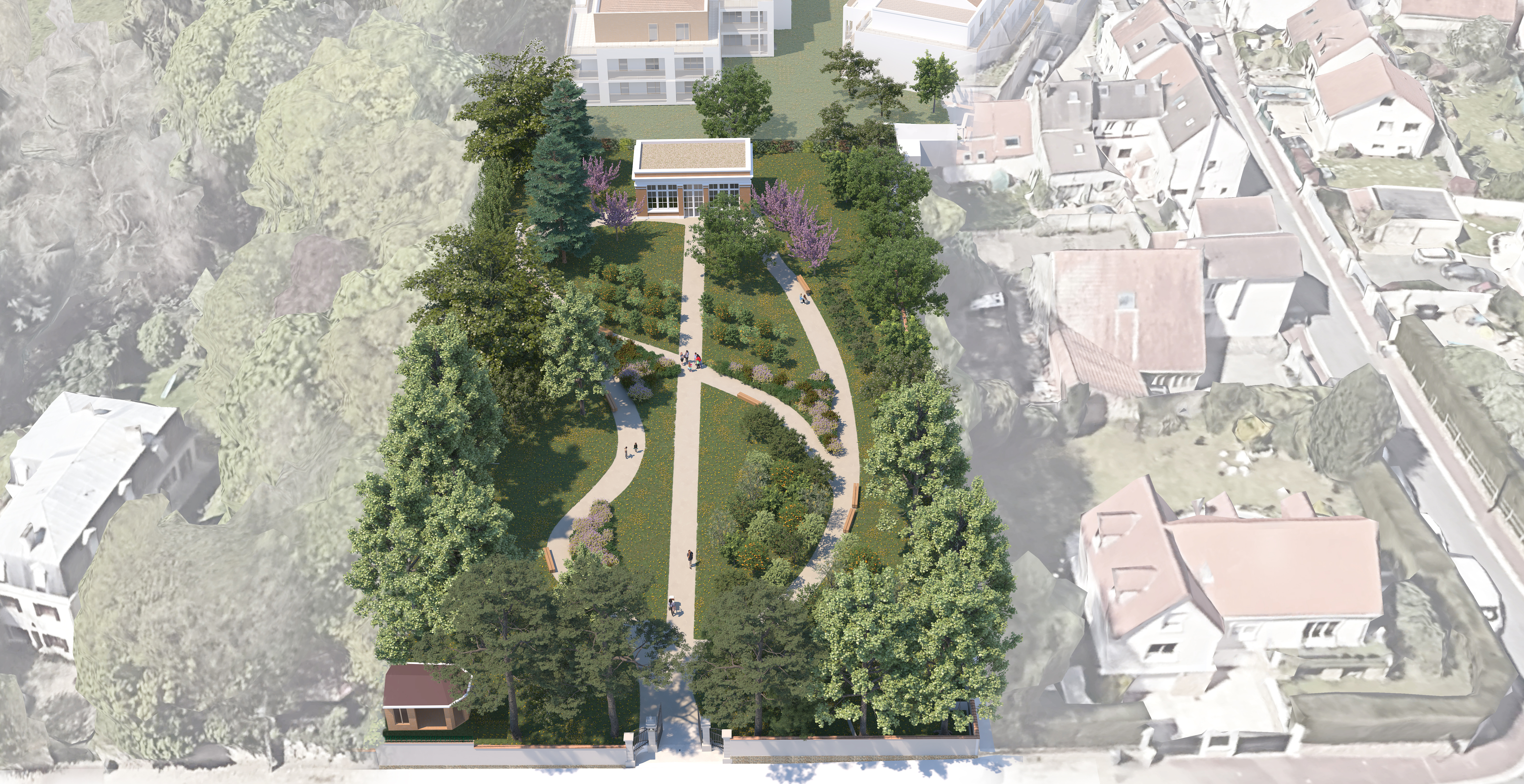 Le projet prend place dans un quartier résidentiel, essentiellement constitué de maisons individuelles et de petits immeubles d’habitation. Celui-ci comprend 52 logements en accession répartis en trois bâtiments ainsi qu’un bâtiment de 30 logements sociaux, et la réalisation d’un parc dit de l’Orangerie. Il est prévu le déplacement du bâtiment dit de l’Orangerie et sa remise en état à l’intérieur de ce parc. Un niveau de sous-sol sera réalisé en-dessous des trois bâtiments accession, et un niveau de sous-sol sous le bâtiment social. Le parking accession sera doté de 119 places et le parking social de 30 places.